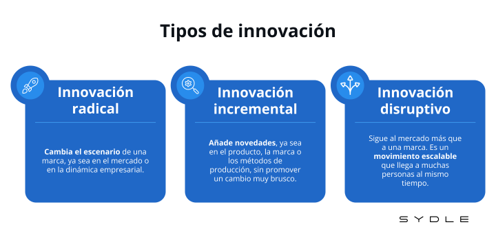 Básicamente, hay tres tipos de innovación: radical, incremental y disruptiva. Pueden variar en función al nicho, el mercado, la esencia de la marca, los servicios y productos ofrecidos.